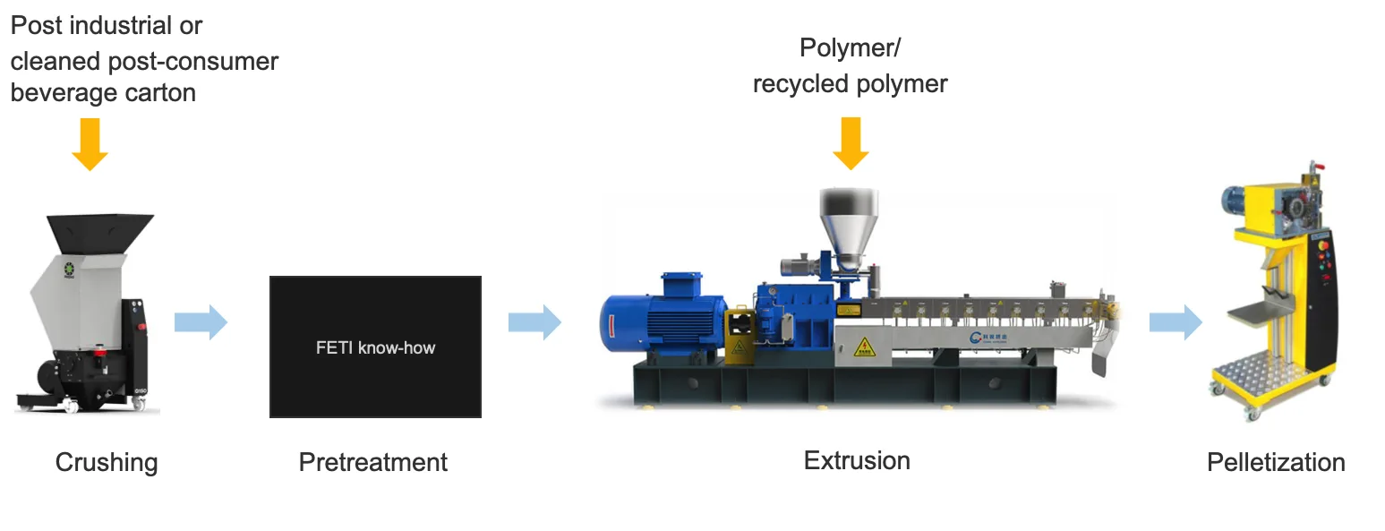 FETI’s approach: instead of separation, combination of materials, and use cellulose fibers of paper phase as reinforcement in composites. The process is simple and easily scalable.